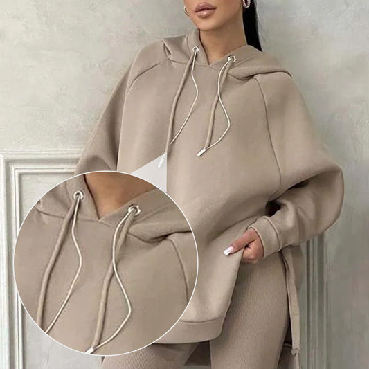 💖 49% RABATT ✨Damen 2-teiliges Set – Kapuzen-Sweatshirt mit Schlitz & Hose👖