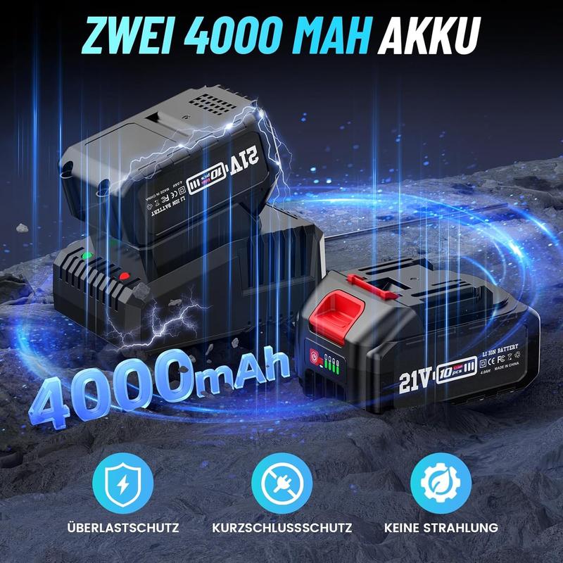 🔋2. DOPPELTE POWER (1 or 2x 4.0Ah Akkus): Nie wieder Zwangspausen!