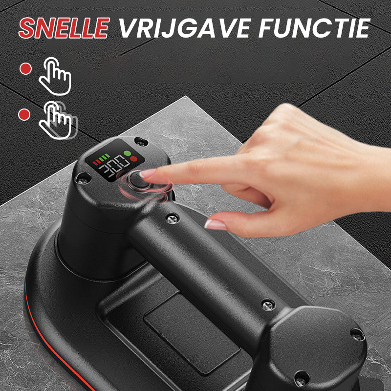 DIGITALANZEIGE: Die integrierte Digitalanzeige zeigt die Saugleistung und die Akkulaufzeit in Echtzeit an und sorgt so für präzises und kontrolliertes Heben bei verschiedenen Anwendungen.