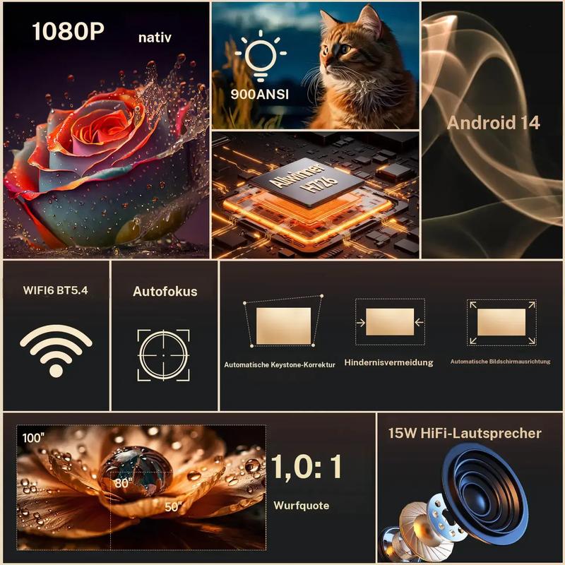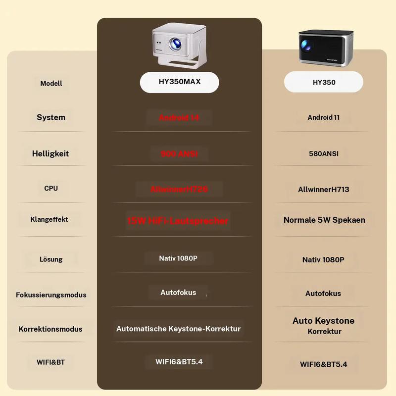 900ANSI HY350MAX Projektor, Autofokus, Android 14, Allwinner H726