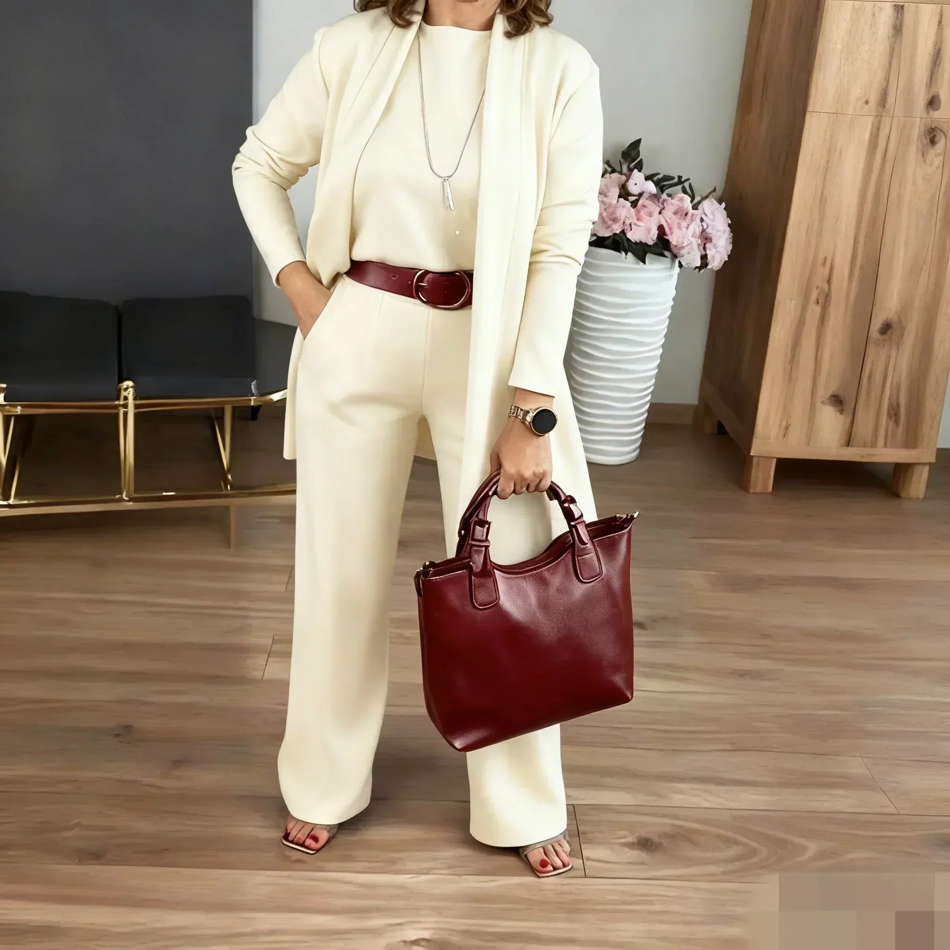 ⏳Zeitlich begrenztes Sonderangebot⏰ Elegantes 3-teiliges Set bestehend aus langem Cardigan, Oberteil und Hose💞