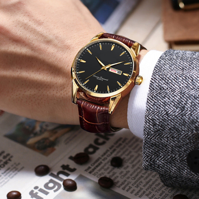 1 * Klassische Armbanduhr für Damen und Herren mit Tages- und Datumsanzeige