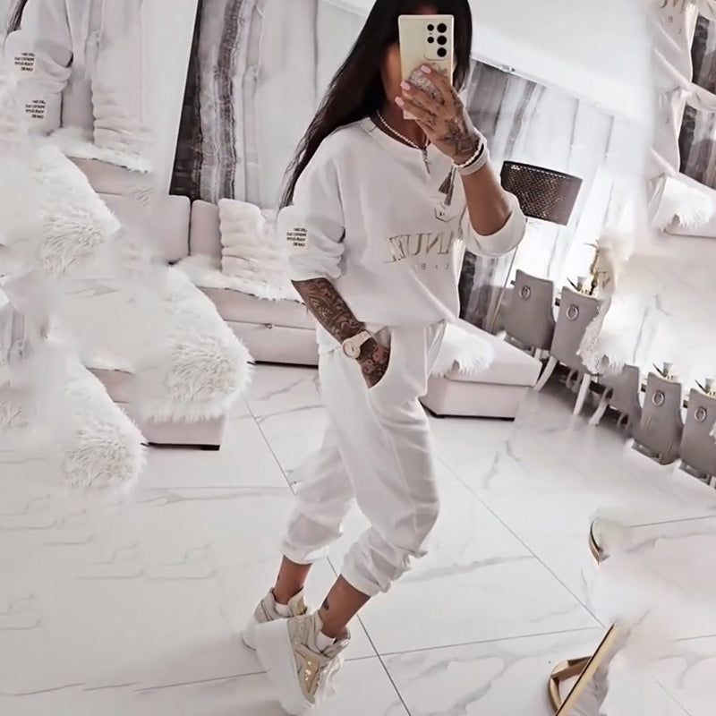 FETTGEDRUCKTE BUCHSTABEN – Die auffälligen Buchstabenprints verleihen dem Set einen Hauch von Modernität und Individualität. Diese auffälligen Details werten das Outfit auf und ermöglichen es Ihnen, Ihren einzigartigen Modegeschmack zum Ausdruck zu bringen, ohne den Gesamtlook zu überladen.